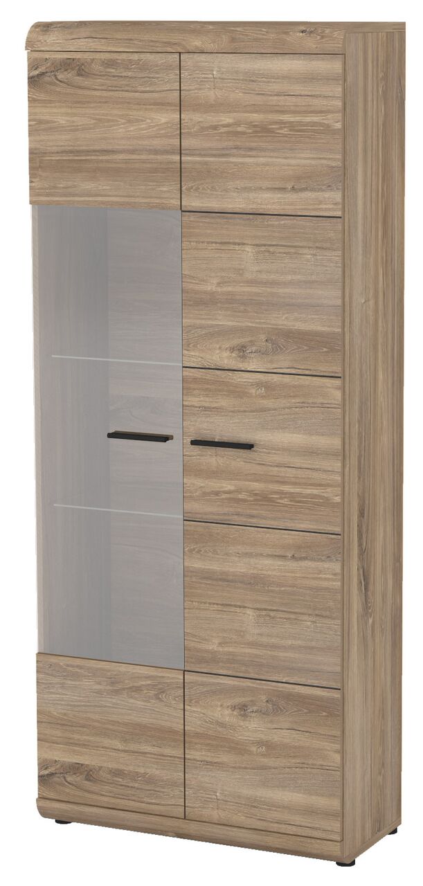 Witryna została wykonana z wytrzymałej płyty laminowanej z obrzeżami ABS, odpornej na zarysowania, uszkodzenia, wysoką temperaturę i wilgoć. Natomiast fronty witryny są uniwersalne – lewe lub prawe zależnie od montażu.